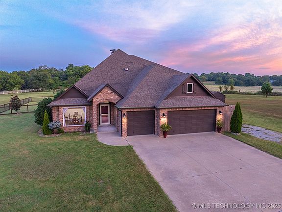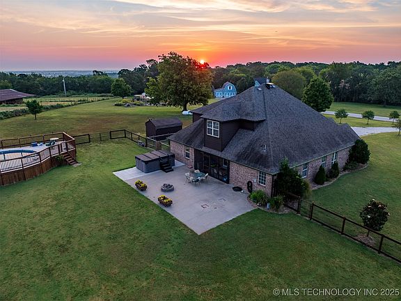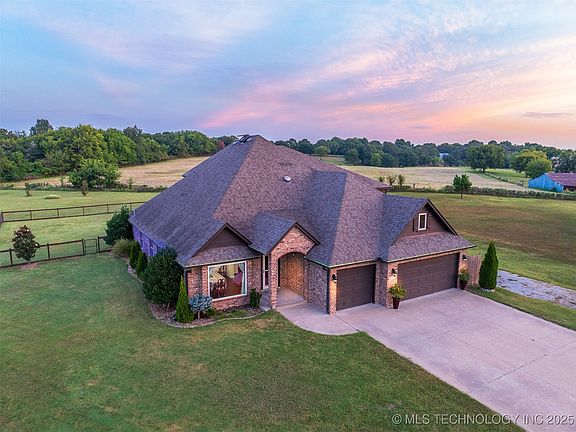 LARGE HOME ON 3 +/- ACRES IN BROKEN ARROW—LESS THAN 3 MILES TO HWY 51! This full brick 6-bedroom, 3-bath home offers a rare combination of acreage, convenience, and versatility, making it ideal for large or multi-generational families. Tucked away at the end of a cul-de-sac in the sought-after Broken Arrow School District, the property blends privacy with proximity to town. Inside, you’ll find multiple living spaces designed for comfort and function. The home includes a formal dining room, spacious bedrooms, and a dedicated theater/game room perfect for family nights or entertaining. Fresh paint throughout gives the interior a bright, updated feel, while abundant storage, including a floored attic, ensures everything has its place. The kitchen is equipped with stainless steel appliances, a solar light tube for natural brightness, and generous custom cabinetry. The primary suite features a walk-in closet, air-jetted tub, and separate shower, creating a private retreat. Step outside to enjoy true country-style living without sacrificing convenience. A screened-in back porch overlooks an oversized patio, above-ground pool with a deck, and plenty of open space to relax or entertain. The long driveway and expanded parking areas are perfect for gatherings or accommodating multiple vehicles. Two separate fenced sections provide flexibility, one for pets and children and another for trailers, equipment, or even a dog pen. The property backs to a peaceful greenbelt, offering privacy and a natural backdrop. Additional features include a 3-car garage with a built-in storm shelter, a security system with cameras, and ample room to build a dream shop or barn. Whether you’re looking to homestead, raise animals, start a garden, or simply enjoy the freedom of extra space, this property supports a wide range of lifestyles. This isn’t just a home. It’s an opportunity to live, grow, and thrive on your own terms. Don’t miss your chance to own such a unique property in Broken Arrow!