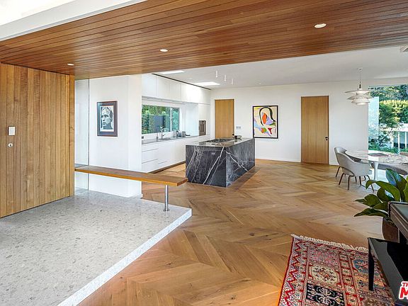 Capturing extraordinary views and a blanket of city lights, this breathtaking 3 bed/3.5 bath mid-century modern home, located in the desirable Crest streets, was originally envisioned by renowned architects, Robert Tyron & George Foy of AIA. Newly remodeled and updated with the finest contemporary finishes, this expansive open floor plan beams with natural light through giant floor-to-ceiling picture windows and explosive views at every turn. The warm interiors feature immaculate herringbone wood floors, Carrara marble appointed kitchen and bathrooms, Italian appliances and a state-of-the-art security alarm system with cameras and technology throughout. The home includes two large principal suites, multiple fireplaces, a wraparound patio, 2-car garage and a bonus en-suite guest room with separate entrance. A truly secluded, creative retreat located on a highly sought after street, just minutes away from the Beverly Hills Hotel, prime restaurants, shopping and nightlife.