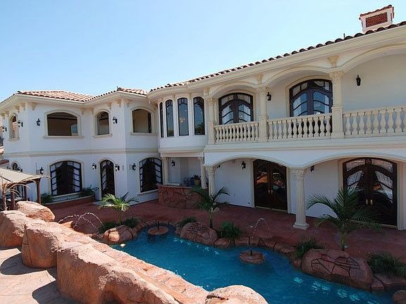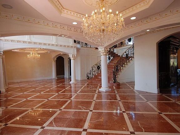 Luxurious home located in prestigious North East Downey. Enter into the foyer and you will be welcomed by a bright open floor plan, stunning Chandelier, and grand dual staircases. The stairs, living room, dining room, kitchen, and family room have gorgeous Rojo Alicante Marble flooring. The gourmet kitchen features granite counter tops and hand painted, custom cabinetry. Throughout the home there are custom curtains, crown molding, and Roman pillars. The master bedroom suite boasts fireplaces, designer shower, and round Jacuzzi with jets. In the back yard there is stunning swimming pool, spa, built in BBQ, and bar under the waterfall. There are 3 bedrooms + 3 bathrooms on the 1st floor and 4 bedrooms + 4 bathrooms on the 2nd floor.