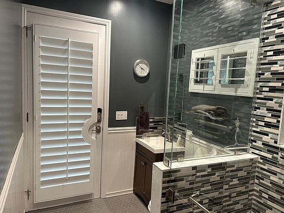 In addition to be plantation shutters, electric blockout shutters throughout. Private entrance and patio.