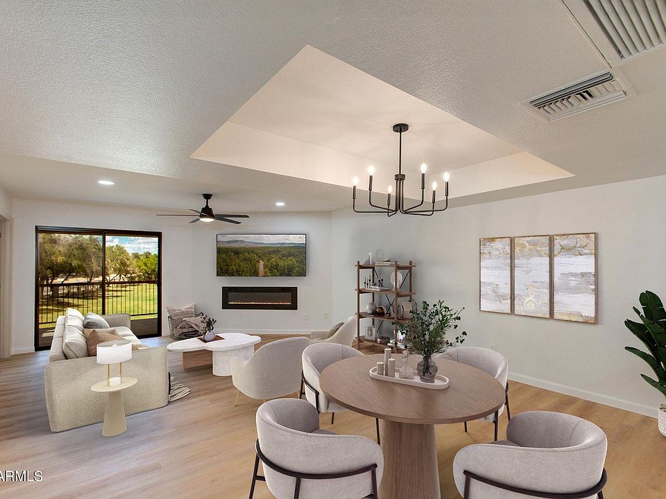 Experience refined luxury in this fully remodeled 2bed 2bath condo with high end designer finishes in McCormick Ranch. This unit boasts brand new dual pane windows and sliding glass doors, spa-like bathrooms with marble-like tile showers and LVP flooring throughout. The kitchen showcases brand new custom white oak cabinets along with quartz countertops in kitchen and bathrooms, a breakfast bar, and seamless flow into the living room complete with an electric fireplace- perfect for entertaining or relaxing. Enjoy 3 private balconies in this corner unit with view of the luscious manicured greenery. This resort style community offers unbeatable amenities including 7 pools and spas as well as tennis and pickleball courts. Located in prime Scottsdale location near the 101 for quick access.