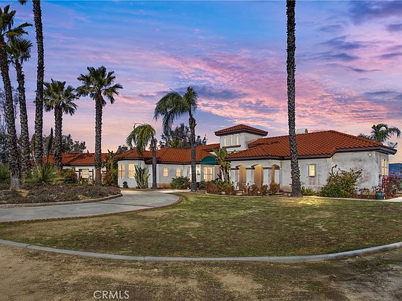 Nestled on a sprawling 10.85 acre estate in the prestigious gated community of Tremont Ranch, This stunning Mediterranean-style home offers unparalleled views of Redlands, San Timoteo Canyon and surrounding mountains. Built in 2000, this single story home boasts 4 bedrooms, 3 baths, and 3034 sqft of luxurious custom living space. The estate includes a 4 car attached garage, and a 1500 sqft detached garage with a lift. Perfect for the car enthusiasts, and for the horse lovers there is a corral. Enjoy your own private well, 22 mature fruit trees, and a sparkling poolside retreat with breathtaking canyon views. This home has an updated HVAC unit, 220v hookups and cleanout for your RV, and the home is renovated with a whole house plumbing re-pipe.