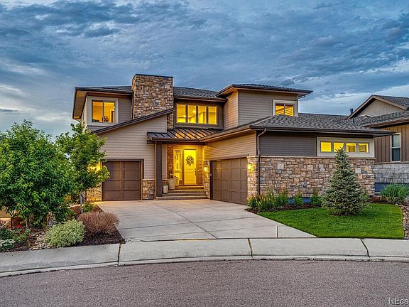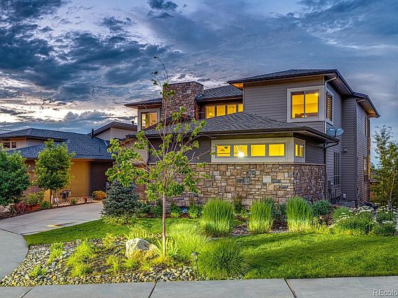 This amazing World Class North Sky residence is an Entertainers dream come true! There are upgrades everywhere! Go to top of the cul-de-sac, where across from the garage opening is the Wildcat Ridge Open Space. The grand entrance and high ceilings welcome you in. The exquisite styling and Restoration Hardware finishes are everywhere! The opulent dining room and wet bar give you a NYC or San Fran feel. The huge granite island provides sitting areas in gourmet kitchen open the Great Room. When you look out to both Mountain and City Views you realize Colorado is all around! The large private deck with firepit(that stays) draws you on a cool star lit night or anytime really. The main level open office can accommodate more than one desk. How about 2 or 3? The upstairs Master Suite is open and relaxing. The loft and the other 2 bedrooms invite fun. Downstairs, the Lower Level walkout basement opens up for more entertainment and the outdoor spa/hot tub stays. The 4th bedroom and other subtle upgrades are appreciated as well. There are two garages, a finished 2 car and a big one car. Make an appointment to see your future home today! Hurry! Get your offer in. This is a VRM (Value Range Marketing), listing. Seller will entertain offers between $1,650,000-1,700,000. Call listing agent for details.