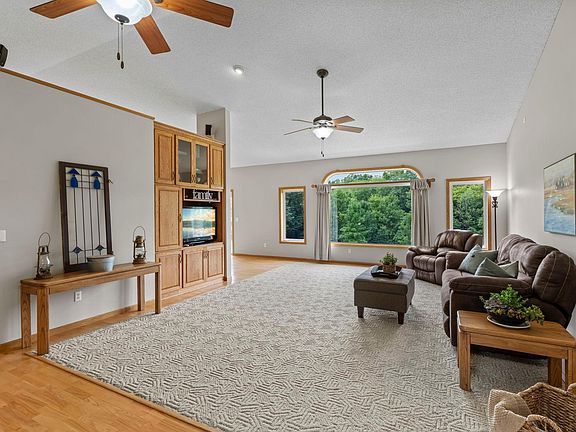Welcome to this custom-built, one-owner rambler nestled on 4.55 scenic acres with 287 feet of frontage on the Crow River. Designed to take full advantage of its serene natural setting, this home offers a peaceful retreat with beautiful views in every direction. Inside, you'll find a spacious and thoughtful layout with three bedrooms on the main level, including a primary suite featuring a private bath and walk-in closet. The open-concept living, dining, and kitchen areas are filled with natural light and provide easy access to the outdoors. A convenient main floor laundry adds to the home's functionality. The walkout lower level features is ideal for entertaining or multi-generational living, with a large family room, a bar/kitchenette, fourth bedroom, and a ¾ bath with heated floors — plus tons of storage space. Outdoor lovers will appreciate the expansive yard, which includes green space enough to play outdoor games, wooded areas, and private trails leading to the river. Oversized, heated and insulated four-car garage is perfect for hobbyists or extra storage needs. Other highlights include fresh paint, newer roof (2021), furnace and AC (2021) and water heater (2024). This lovingly maintained home is a rare opportunity to enjoy space, nature, and privacy—all within reach of everyday amenities and a quick drive to City amenities in Maple Grove, Plymouth, Buffalo and St Michael.