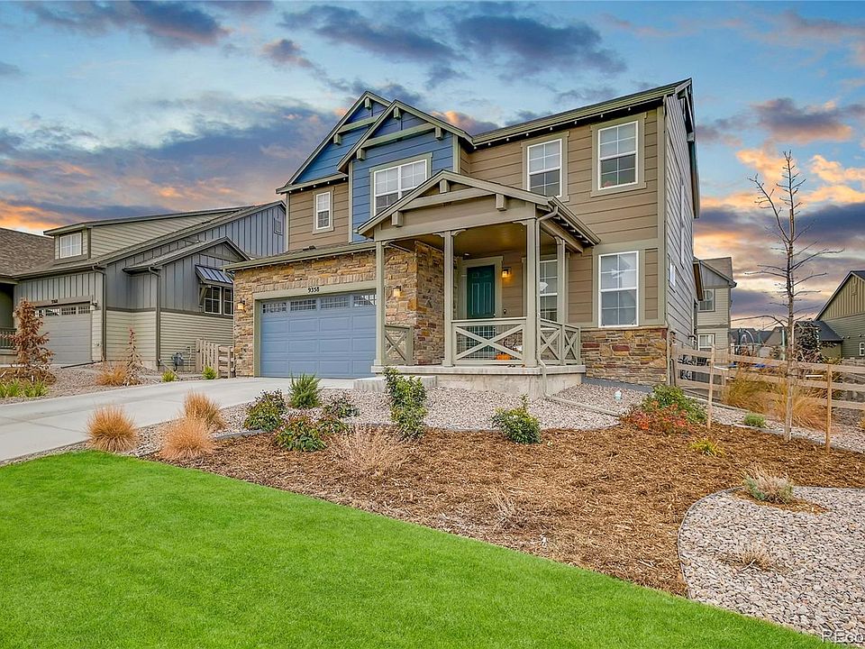 Situated on a hillside with mountain views in Sterling Ranch's first neighborhood, Providence Village, this beautiful Meritage Home checks all the boxes! Enjoy energy-efficient living at it's finest with ultra low utility bills thanks to the fully owned solar array (no lease or monthly payments - it's totally paid!), smart lighting/systems throughout and 2 HVAC systems to make sure you're cozy year-round. Buyers will love the soaring two-story great room, spacious second floor loft area, and flexible finished basement, which comes complete with a bedroom suite and stylish sliding barn door, multiple living areas, and even a finished kids' play area underneath the basement stairs (be sure to check it out - it's best accessed from the bedroom closet!) Upon entry, you're greeted by a spacious executive office, which is helpfully separated from the warm and inviting open-concept kitchen, dining room, and great room. The kitchen is anchored by a large granite island, generous cabinetry, large pantry and stainless steel appliances. The main level hardwoods flow into a convenient mudroom area that features a second cozy tech/work space. The bright dining area opens to a private backyard complete with a covered patio and mountain views. Three bedrooms, a large loft, and a laundry room greet you on the second floor. In the master suite you'll find dual walk-in closets, 5-piece bath and more lovely views. Two secondary bedrooms share a Jack-and-Jill bath. Head to the finished basement where the fourth bedroom and another 3/4 bath await, as well as 2 cleverly designed living areas that could be separated into playrooms, a fifth bedroom, a movie room, etc. A 3-car garage affords convenience and extra space (3rd bay is currently set up as a home gym). 15 minutes to Downtown Littleton, 35 minutes to Downtown Denver, 45 minutes to Denver International Airport.