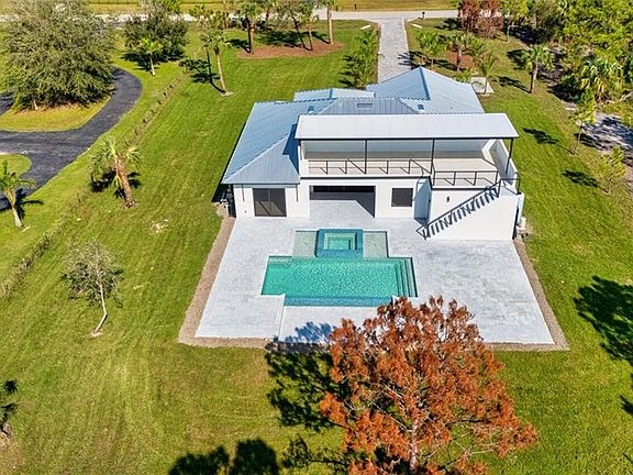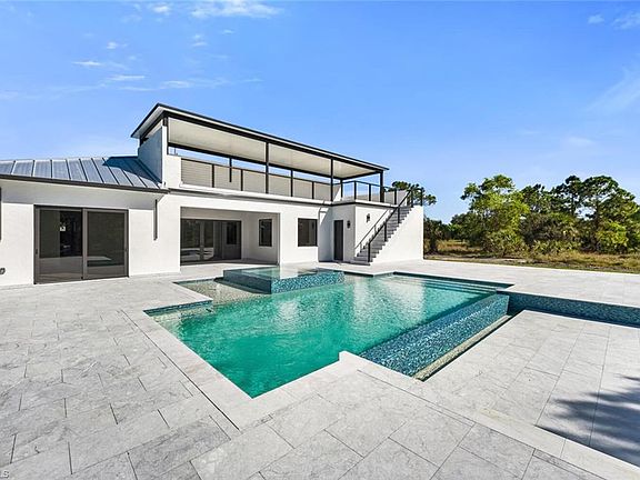 Welcome to an exquisite newly built 4 bedroom 3 bathroom plus den, home located on 2.27 totally upland Acres in the heart of Naples. Step inside and be greeted with a wonderful open and bright floorplan. The kitchen boasts an elegant two tone combination of natural wood and white acrylic handleless cabinets, seamless Quartzite Taj-mahal counter tops, stainless Samsung appliances, and a wine cellar which can hold up to 60 of your favorite wines. The living area is graced by a beautiful recessed ceiling. The sliding doors lead outside to a mesmerizing infinity pool, 360 Degree infinity edge hot tub, and a second-story kitchen offering breathtaking views and the best entertaining area! Enjoy a Fabulous Primary Suite! The Standing Seam metal roof, Whole house reverse osmosis water system, and a 3 car garage add to the property's allure and value. Situated conveniently near Big Island Corkscrew Park - perfect for family days at the park, and a wonderful plaza anchored by Publix. Welcome home!