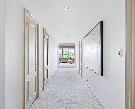 Open exposures to the north, south, east, and west flood every room with natural light, overlooking Central Park and the iconic Museum Mile. A private elevator landing leads to a grand foyer designed by John Saladino, connecting formal entertaining areas with private quarters.