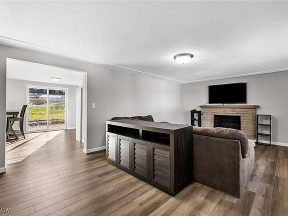 Move right in and enjoy to this completely updated Madison ranch! This stylish home features white cabinetry, quartz countertops, and Whirlpool appliances in the modern kitchen, along with a spacious living room complete with a cozy fireplace and decorative mantel. Both bathrooms are fully updated with sleek tile surrounds. The two-car garage includes epoxy-coated floors, and the clean, full basement adds extra space. Step outside to a concrete patio perfect for relaxing or entertaining. Updates include flooring, trim, paint, windows, HVAC, electric panel, plumbing, hot water tank, windows, sidewalk, driveway, front door, fascia, soffits, and gutters.