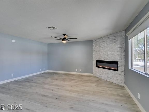 Come see this 2 bedroom 2 bathroom condominium located in a desirable neighborhood in Summerlin. Walking in to an open concept floor plan the natural light during the day rejuvenates throughout. This kitchen is equipped with white cabinets and black matte handles. A stainless steel farm sink comes in combination with new appliance. It's quart countertop drops down like a waterfall giving it that modern appeal. Upgraded recessed lighting. Warm luxury vinyl plank flooring. The living room features an accented stone electric fireplace very inviting for gatherings or just to enjoy a quiet space. You have a private balcony enclosed by a gate. This condo has been recently upgraded for a move in ready buyer. This location is close to outdoor activities for outside enthusiast, shopping, entertainment, parks, freeway access and much more! HOA- includes water, sewer, trash, land maintenance, common area!
