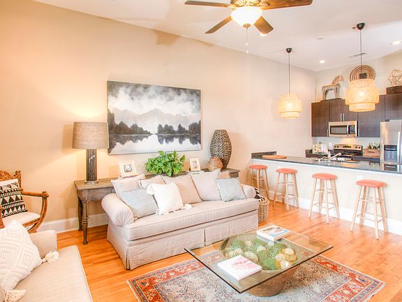 This upscale condominium is in the former JB White's department store in the heart of Augusta's vibrant downtown. Featuring wood floors, tall ceilings, abundant natural light, granite countertops, tiled baths, state of the art entry system, off-street parking, and New Moon Cafe and Tip Top Taps downstairs. Highest walkability score in Augusta! Walk or cycle to Georgia Cyber Center, AU, MCG, Augusta University Health) and medical complex; convenient for Fort Eisenhower, Vogtle, and SRS. Furniture available for sale. Historic character, all modern amenities, and the city at your doorstep!