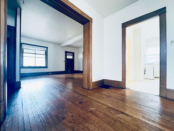 This roomy two bedroom, one bath is on the main floor of a conversion duplex. It has wood floors throughout, along with beautiful woodwork. There is a nice covered front porch as well as off street parking.