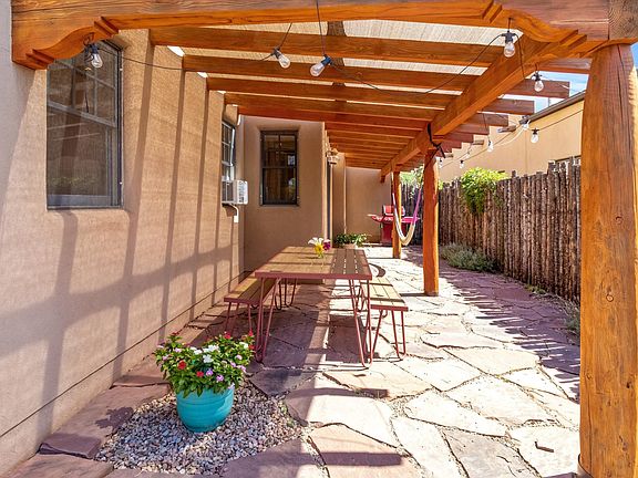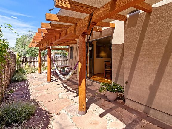 This is Santa Fe Urban Perfection! Whether you’re looking for a Home Sweet Home or a Lock ’N Leave second home close to everything, this well-maintained condo with granite countertops, radiant heat and a sweet courtyard will provide the perfect respite from a chaotic world. Recent improvements include silicon roof coating (2021), new chimney liner (2022), new washer/dryer (2022), new tankless hot water heater (2023), new carpet (2024), mini-split (2025) and new domestic water line (2025). Both bedrooms are upstairs with soft trees at the windows - you'll feel like you're waking up in a tree house. An alcove at the top of the stairs would make a perfect open office space and there is a dedicated laundry room. This unit is one of two in the condo association. The other condo unit is behind it, fronting onto another street, making this feel more like single-family living. This home combines quality and style. If you're tired of the funky fixer-uppers, watch the video tour and schedule your showing today.