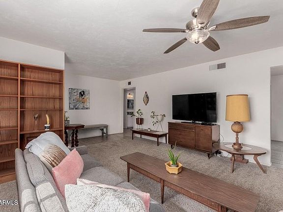 Charming Mid-Century Remodel - No HOA! Experience the perfect balance of style & comfort in this beautifully updated 3 bed, 2 bath home. Step inside to find a bright & welcoming interior adorned with a tasteful blend of plush carpet & sleek tile flooring. The modern kitchen is designed for the home chef, boasting SS appliances, built-in wall oven/micro combo, gas cooktop, granite countertops & crisp white cabinetry. The spacious primary suite provides a peaceful retreat with a newly renovated private bath, while a versatile den offers flexibility for a 4th bedroom, home office or creative space. Two additional bedrooms & an updated guest bath provide plenty of room for family or visitors. Enjoy outdoor living in the expansive backyard featuring a large patio, storage shed & endless... potential to create your ideal outdoor retreat. Situated in one of the few neighborhoods with SRP flood irrigation, this property offers the rare opportunity for vibrant landscaping & lush greenery. Ideally located just minutes from downtown Mesa, top-rated schools & easy freeway access to the 202, 60, 10 & 101, this move-in-ready gem perfectly blends mid-century charm with modern updates.
