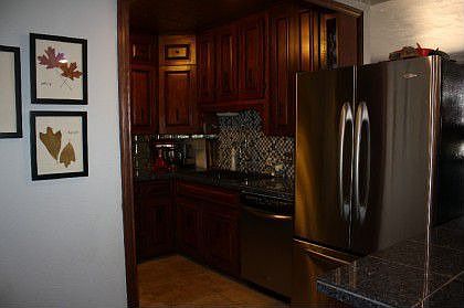 This home is absolutely adorable! Talk about charm...hardwood floors in two of the three bedrooms and in the front living area, travertine tile in the bathrooms, second living area and in the kitchen. Granite tile countertops with pendant lighting, stainless steel appliances, refrigerator and washer and dryer included. The kitchen and bathrooms have been completely remodeled. The home has new plumbing! The master bedroom has a sitting/office area. Single car garage with garage utility.