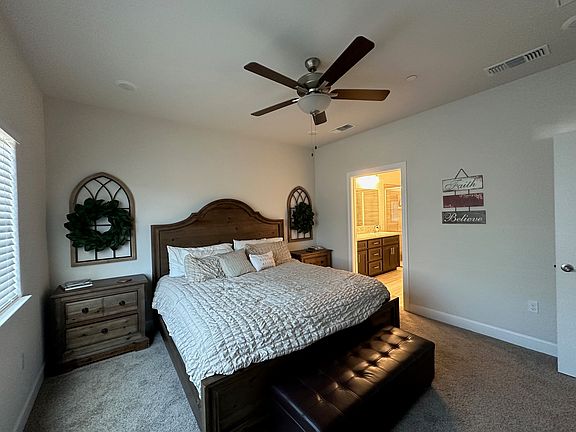 New home in a 55+ Community with an HOA, featuring two Master Suites, possible 3rd Bedroom / Office, Great Room Concept, Wine Refrigerator, Luxury Vinyl Plank & Tile Flooring, Granite Counter Tops, Custom Cabinets, All Electric and Energy Efficient, Easy Care Backyard with Turf Grass, Spa and Pergola. Home is located in a Gated Community with trail access to the Dry Creek Golf Course, a 4,500 square foot Clubhouse on-site with Heated Swimming Pool, Pickle Ball Courts, Bocce Ball, Putting Green, Horseshoes and a Walking Trail. Close to Highway 99 and All Amenities.