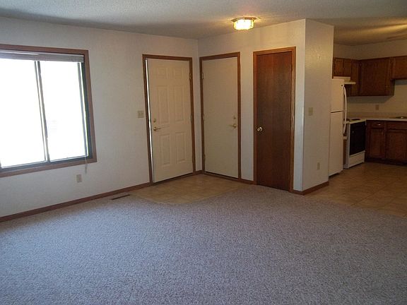 Townhome for lease on cul-de-sac in quiet, friendly neighborhood. Approximately 960 Sq Ft living area with level entry (no steps) and an open layout. Full bath and two large bedrooms with double closet in master. Entryway coat closet and hall way linen closet. Central air conditioning and forced air furnace. All appliances including washer and dryer in unit. Attached oversized single stall garage (12' x 22') with opener and keypad plus room for shelving, freezer, etc. Rent includes lawn maintenance, snow removal, garbage service, and Culligan Water Softener. Utilities are tenants responsibility. On site mailboxes for your convenience. Walking distance to downtown, grocery store, post office, etc and close to walking/bike paths. No pets, no smoking. One year lease minimum then month to month after year expires. Credit/Background check required with $30.00 fee. We do not use the application Zillow has on here so please do not fill it out or pay a fee to do so.