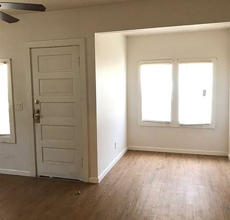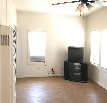 Super cute! 1 bedroom 1 bath single story home with approximately 740 SQ FT. of living space. Kitchen with gas range and laminate counter tops. Bathroom with shower. Inside laundry area. Cozy living room and dining area! Laminate floors thoughout. Window unit for A/C. Wall unit for heat. Fenced backyard. Renters insurance required.