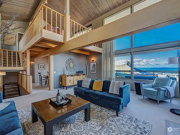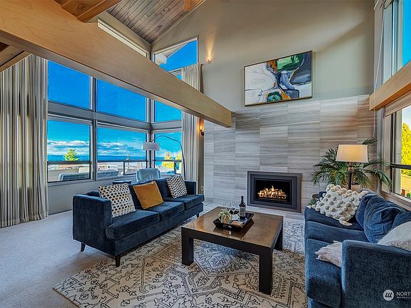 This unique, custom-built home was architecturally designed to take advantage of Sound & mountain vistas from almost every room. Significant updates are found throughout. The 2-story living rm offers a stunning wall of view windows, complemented by a handsome stone-clad fireplace. Entertaining is a breeze, as the formal dining rm spills open to the expansive view deck. Featuring a beautiful renovation, the high-end kitchen boasts stainless steel European appliances (Fisher & Paykel, DCS, Faber, Liebherr & Miele) that will thrill any chef. The lower level is an established Airbnb, or use as Bed#3, MIL or family rm. Located close to Yost Park, & a few blocks to downtown shops, eateries & beaches! A great condo-alternative!
