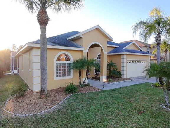 Experience this inviting 4-bedroom, 3-bath home in the desirable Four Corners area of Davenport, perfectly positioned to capture stunning sunset views and offering a private pool, hot tub, and a peaceful pond enhanced by lush surrounding greenery. The setting provides a serene, countryside atmosphere while still being only minutes from Disney. Inside, you'll find an easy-flowing layout that links the living, dining, and family spaces, complemented by a kitchen with a breakfast bar and cozy dining nook. The primary suite enjoys direct views of the pool. The screened patio is ideal for unwinding, featuring a private pool and hot tub with no rear neighbors. Recent improvements add to the value: ROOF 2019, AC 2022, pool pump and pool heater 2022, and a new hot tub pump in 2025. Community amenities include tennis courts, a playground, multiple sports courts, and a community pool. The property also supports flexible rental options, permitting both long- and short-term leases for those interested in short-term rental use. With convenient access to shopping, dining, golf, and major attractions, this home offers comfort, convenience, and excellent investment appeal.