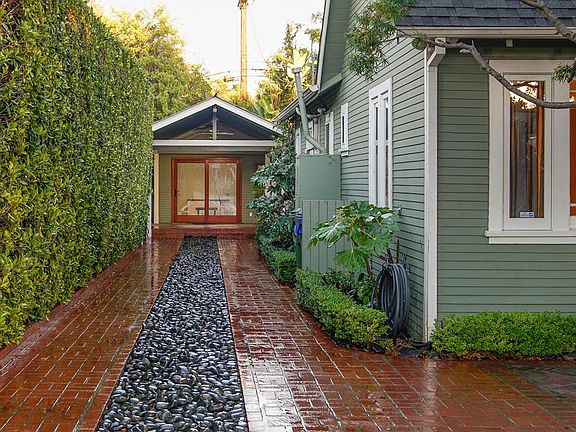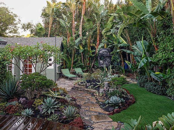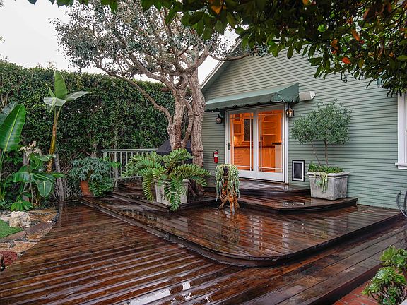 This 1922 craftsman-style home comes complete with separate guest house (approx. 485 sf) and lush landscaping surround. Main house has open living/dining room/kitchen floor plan. Full-length fireplace mantle is custom to the house. The high-end chefs kitchen includes top-of-the-line appliances, marble and teak countertops, and two prep areas with commercial stainless steel sinks. The mahogany peninsular bar casually seats six. The kitchen opens to a split-level deck with a Weber grill that connected to the natural gas line. The home has blond hardwood floors throughout. Dining room includes custom mahogany built-ins. The primary bedroom includes a step-in closet. Garden-view bedroom has a full-size stack washer/dryer unit in a large closet. And the custom bathroom is uniquely stylized with beautiful fixtures and floor to ceiling tiles. The mature garden is designed for relaxation and meditation. The guest unit is two rooms/ one bath. One room is a custom-built office that overlooks the garden. The second room features a high ceiling with remote-controlled skylight, formerly used by the owner as an art studio. Off this room is a covered outdoor platform. There also is an overhang for shaded vehicle parking. The property is secured by ADT security system, including eight [8] security cameras that cover the entire property, and a back up generator. There is a 220-high charging port for minimum recharge time on e-cars. This property is secluded, yet in the center of it all. Trader Joes and Smart & Final are two blocks away. Sprouts and Target/Best Buy are within walking distance. This home a true Hollywood gem.