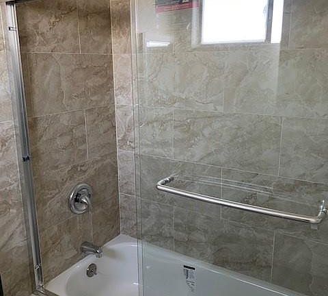 Spacious 2 bedroom/2 full bath apartment, with under roof/gated parking. Tile flooring throughout. Wall furnace heater.