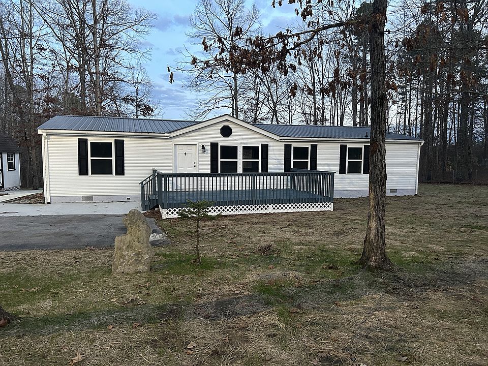 Newly renovated with new flooring, paint, counter tops, walk ways, & much more double wide on permanent foundation. Features split floor plan with 3 bedrooms 2 bath master has walk in tile shower, garden tub, large walk in closet. Open kitchen/ living room with fireplace for backup heat or just add coziness to your evening after a long day. Lots of cabinets and storage space, large utility room with walk out to covered back deck for grilling & nice open partial fenced yard. 2 more good size bedrooms. Detached storage shed for your mower & toys, blacktop driveway. Come check it out.