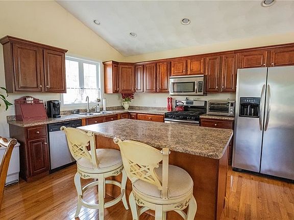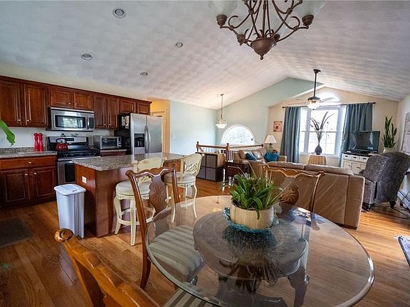 Well Maintained 3 (possible 4th) bed, 2 full Bath Raised Ranch with Beautiful views of Posneganset Pond on a Corner Lot! Second floor of the home has an open floor plan with an updated Kitchen with a Breakfast Island and Stainless Steel Appliances, Dining Area and Living Room with Gleaming Hardwood Floors and Cathedral Ceilings! Three Bedrooms and a Full Bathroom with Laundry complete this level. The first level has an entry from the interior of the home as well as it's own separate exterior entrance. The first level includes a Living Room, a Full Bathroom, A Kitchenette ,(Refrigerator and Sink), and another Den, that could possibly be converted into an addition 4th bedroom. The mechanicals and 2 car garage are also on the first level. 2 year old High Efficiency heating system too!!!