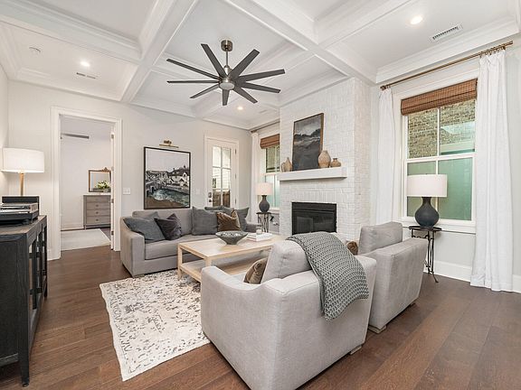 Stunning 4 Bedroom Luxury Brownstone end unit townhouse by award winning builder, Homes by Dickerson. Experience maintenance-free living in Durham's popular 751 South neighborhood, combining the best of urban and suburban living. This home boasts a main level owners suite with custom closet and walkthrough to laundry. The main level features 10 foot ceilings, exquisite light fixtures and beautiful engineered hardwood flooring. A wall of windows provides beautiful natural light. You will love entertaining in the chefs kitchen with large island and a layout that lends itself to both meal prep and entertaining. A large living space with fireplace and coffered ceiling is elegant yet cozy and open to the dining and kitchen area; perfect for hosting guests. A large private fenced patio/courtyard off of the living room makes for seamless indoor/outdoor entertaining, relaxing or grilling. Take the beautifully crafted staircase to the second floor where you will find a large landing with hardwood flooring and lots of light. A perfect space for guests to enjoy. This is surrounded by 2 generously sized bedrooms with jack and jill bath and extra closets providing ample storage. The third floor open space offers many possible options including, office, bonus, exercise and relaxing. Also on the third is a full bath and bedroom. Although tucked away in a quiet tree-lined area this neighborhood is only a short drive to RTP, RDU, Southpoint Mall, the American Tobacco Trail and is an easy drive to downtown Durham and Chapel Hill. Minutes to amazing eateries and entertainment. Amazing amenity center, pool, parks, retail and sidewalks make this one of Durham's most desirable communities.