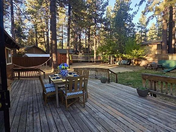 BIG BEAR READY!! Come see this beautiful property....HUGE LOT!! Zip lines / jacuzzi!! Big deck for entertaining.....Boat parking and RV parking as well. This property is absolutely stunning......minutes to the airport....super close to the Lake and Town. Meticulously put together...this Cabin has it all. The ultimate place to house family and friends for both winter and summer. Fully furnished...and ready to move in. This one won't last.