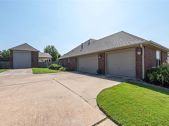 WELCOME HOME! This 4 Bedrm 3 Bathrm home on 0.61 Acres +/- is located near the Creeks Golf Course, city park, & min away from I-49 & schools! Enjoy a landscaped front lawn. Inside find an office/den off the entry. Flow into the living rm feat corner gas log fireplace & crown molding. In the semi-open concept kitchen, w/ peninsula, granite counters, cabinet space, Wolf Gas Range, Wolf Hood, an eat-in dining rm & built-in desk! Host guests in the formal dining rm with wainscoting & wood floors! Rejuvenate in the primary bedrm w/ ensuite feat: double sink vanity, jacuzzi tub, & shower! Plus 3 more spacious bedrms and 2 more bathrms. Out back enjoy the extended covered back patio w/ hot tub & firepit! A garden space for green thumbs! Property also incl: a 45x20 (900 Sqft) Heated & Cooled Brick Shop/Garage building perfect for storing an RV w/ covered patio! BONUS - property incl storm shelter, front & back sprinkler system, whole home generator, new roofs (home + shop) & new pergola in 2022! Don’t miss out! Act now!