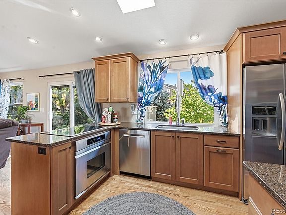 This home has been fully transformed through a complete remodel that opens up the interior and creates a relaxed, modern living experience. The main level was reconfigured to allow open movement between rooms with a direct connection to the outdoors. Natural light fills the space, and the layout works equally well for quiet mornings or casual gatherings. The kitchen has been updated with high-end finishes including quartz countertops and quality appliances that blend form and function. Hardwood flooring runs throughout, adding warmth and continuity to the open layout. On the lower level, a comfortable family room with a fireplace leads into a bright sunroom currently used as an office. This flexible space opens directly into the backyard, making it easy to shift between work and fresh air. The finished basement includes a separate bedroom and full bathroom offering privacy for guests or longer stays. The backyard was designed for comfort. An updated deck connects to a hot tub set among mature landscaping. A gas firepit provides a quiet place to unwind, and a nearby gazebo offers a sheltered retreat. A detached shed with electricity sits at the edge of the yard and is ready for use as a workspace, studio, or storage area. A new HVAC heat pump installed in 2025 brings efficient, year-round climate control. The home is located in a quiet pocket of Highlands Ranch with access to trails and multiple recreation centers. The Highlands Ranch Metro District maintains the area's parks, open space, community infrastructure, and recreation programs. Schools nearby have a strong reputation, and shopping and major roadways are close enough to keep everyday life simple. This property offers more than a remodel. It’s a well-crafted living space built to support comfort, flexibility, and a strong connection to both home and community!