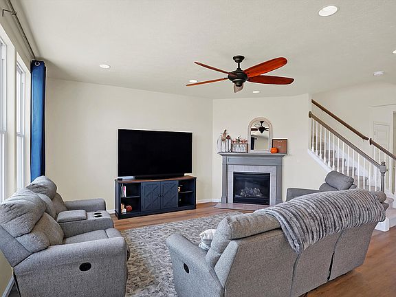 Step into this stunning, spacious home featuring an open floor plan, perfect for entertaining! The expansive great room seamlessly connects with the kitchen and dining nook, complemented by a formal dining room for more intimate gatherings. Outside, you'll find a generous 420 sq. ft. patio complete with a gazebo, ideal for outdoor entertainment. Hosting guests is a breeze with the flex room, currently used as a guest bedroom, and a loft offering additional space. Built in 2019 and lovingly maintained by its original owners, this home is move-in ready with updates throughout. The main floor boasts premium vinyl plank flooring (20 mil wear layer) and has been freshly painted in neutral tones, providing a clean slate for new owners. The kitchen shines with beautiful granite countertops, while the bathrooms feature elegant marble vanities. This home offers 4 bedrooms with walk in closets, 2.5 baths, and two versatile flex rooms, currently serving as an office and guest room, but easily convertible to suit your needs. Additionally, a desk/craft space off the dining nook offers convenience for creative projects or work-from-home setups. The master bedroom boasts ample closet space with his and hers closets. The tandem garage accommodates two vehicles, with ample space for tools or storage. The wall-mounted garage door design even allows for overhead storage, maximizing the available space.