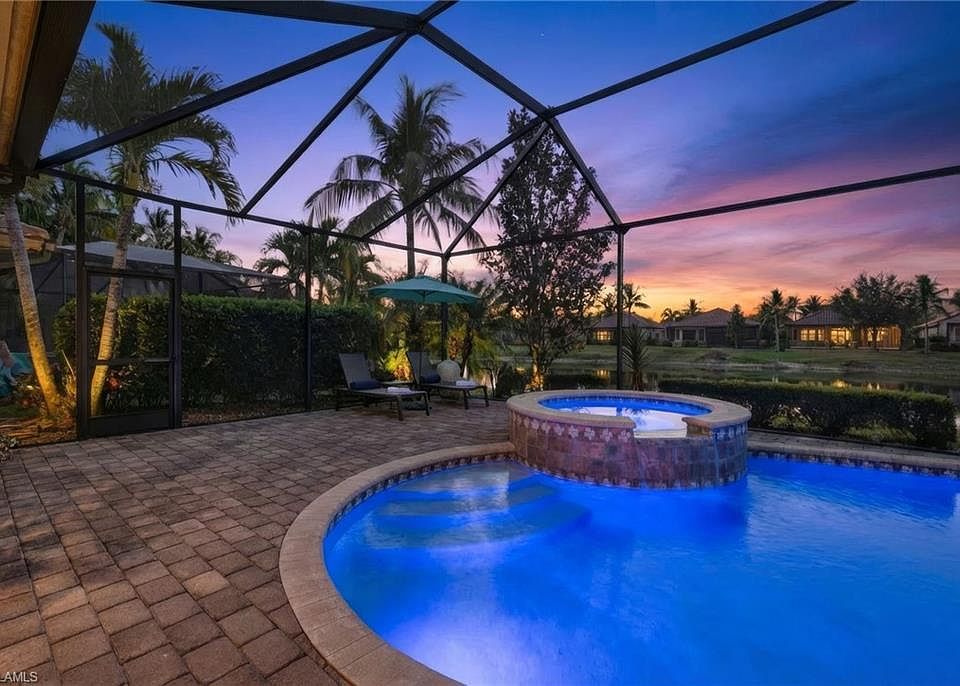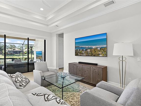Welcome to this meticulously maintained Salerno floor plan home, perfectly situated in the highly sought-after gated community of Bonita Isles in Bonita Springs, Florida. This beautifully updated residence offers 3 spacious bedrooms and 2.5 bathrooms, combining modern upgrades with an inviting, open-concept layout designed for comfortable living and effortless entertaining. As you enter, you’ll notice the freshly painted interior that brightens every room and complements the home’s elegant finishes. The heart of the home features a gorgeous upgraded kitchen complete with gleaming quartz countertops, stylish cabinetry, and a generous island that seamlessly flows into the living and dining areas. Step outside to your private screened-in lanai that faces northeast, offering serene mornings and the most breathtaking sunset views reflecting beautifully across the water and landscaped surroundings. Enjoy the Florida lifestyle year-round with your sparkling pool and spa, recently enhanced with new pool equipment for worry-free enjoyment. Every corner of this home showcases pride of ownership. The bedrooms are spacious and filled with natural light, and the bathrooms are well-appointed, including a convenient half bath for guests. Additional updates include a brand new washer and dryer, adding to the move-in-ready appeal. This property is truly a rare find—spacious, pristine, and perfectly positioned within one of Bonita Springs’ most desirable communities. With resort-style amenities, low HOA fees, and convenient access to beaches, dining, and shopping, this home offers the best of Southwest Florida living.