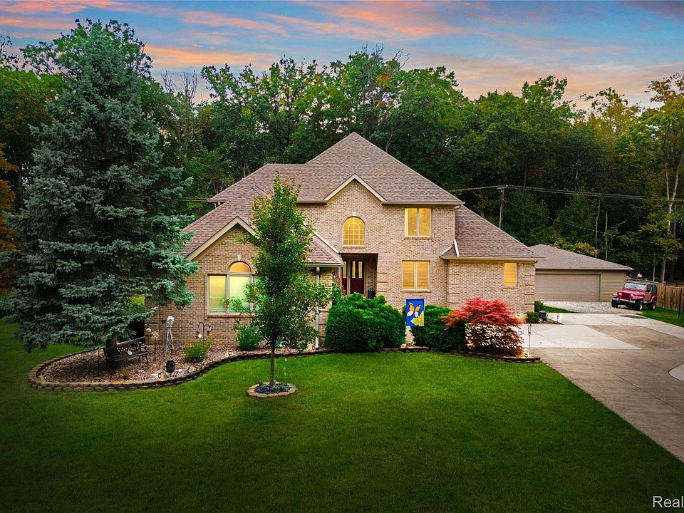 All-Brick Contemporary with Dreamy Backyard Retreat! This beautifully updated 4-bedroom, 2.5-bath home offers a serene lifestyle on a quiet Grosse Ile street with a first-floor ensuite and first-floor laundry. Features include wood floors, vaulted ceiling, Andersen windows, and plantation shutters. The remodeled kitchen offers granite counters, dual ovens, a double-drawer dishwasher, and abundant workspace open to the inviting great room, perfect for entertaining and family gatherings. Recent updates include newer central air, gutters with gutter guards, a newer gas fireplace insert, and blown-in insulation in the attic. Enjoy a peaceful setting with abundant wildlife including deer and turkeys plus peek-a-boo water views. Outdoor living shines with a pool (2020) seamlessly integrated with Trex decking backing to wooded property for ultimate privacy. Two garages—an attached garage plus a 30x30 detached garage built in 2020 with space for 3.5+ vehicles—offer plenty of storage and hobby space. Full unfinished basement with plumbing stubbed for a future bath is ready for your plans. Located close to the toll bridge and just one house from the Trenton Channel. Experience the island lifestyle of Grosse Ile surrounded by the Detroit River with access to boating, fishing, biking, wildlife watching, yacht and boat clubs, top-rated schools, parks, golf courses, and a private airport, all within minutes of major expressways and Downtown Detroit. This home blends comfort, updates, and natural beauty—your island retreat awaits!