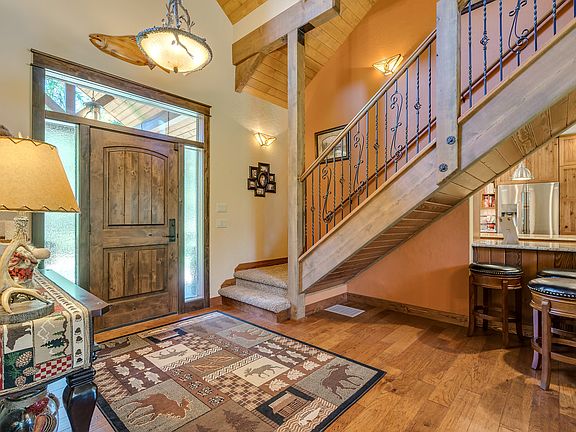 Quality Custom Craftsman home located in desired MountainView at Farragut Park. (Buyers agent incentive!) This 2860 sq ft home offers 3 bedrooms, 3 1/4 bathrooms, an office, laundry room, chefs kitchen, bonus loft, finished and heated 2 car garage and separate finished heated and insulated 30x46 SHOP with 16-foot walls and a 10x46 lean to attached, RV hookup inside and out. 4.52 acres flat and fully treed, you cannot see your neighbor. Amenities include granite counters throughout, hardwood floors throughout the main floor and carpet in the bedrooms, full tile back splashes, under cabinet lighting, professional series (Thermador) stainless steel appliances, Wine fridge and custom Hickory cabinets, knotty doors throughout, 2 natural gas water heaters, forced heater & air conditioner, gas starter wood burning fireplace with floor to ceiling stonework, vaulted ceilings with "spray foam" insulation covered with T&G and massive beams. The Master Suite includes an over-sized walk in shower, over-sized jacuzzi tub, his and her vanities, heated tile floor and separate his and her large walk in closets with custom builtin for her and ceiling speakers. Your quests or kids are all upstairs with two bedrooms and two full baths and a loft to hangout in. Custom light fixtures throughout the entire house. The exterior has hardi plank siding with cedar shingles. Enjoy the music from overhead speakers and the view from the beautiful large pebble stone front porch with stone accents and huge timber beams, a water-less pond feature and a 60' pebble stone sidewalk from the driveway. Or enjoy the music from overhead speaker and the view from the pebble stone patio while being cooled by the fans. Patio is also plumbed with natural gas for the bar-b-que. Landscaped with extensive irrigation, including to the roadway. The home sits on a pie shaped lot giving you 839 feet of frontage. Also has a 22K Watt Whole house back up generator. All city utilities, natural gas, cable etc. Roads are maintained by the County. Minutes to Couer d'alene or Sandpoint and only 6-miles from the largest lake in Idaho. a New Super One grocery store 1 1/2 miles away. The neighbors are AWESOME! HOA $0 Live where others travel to visit.