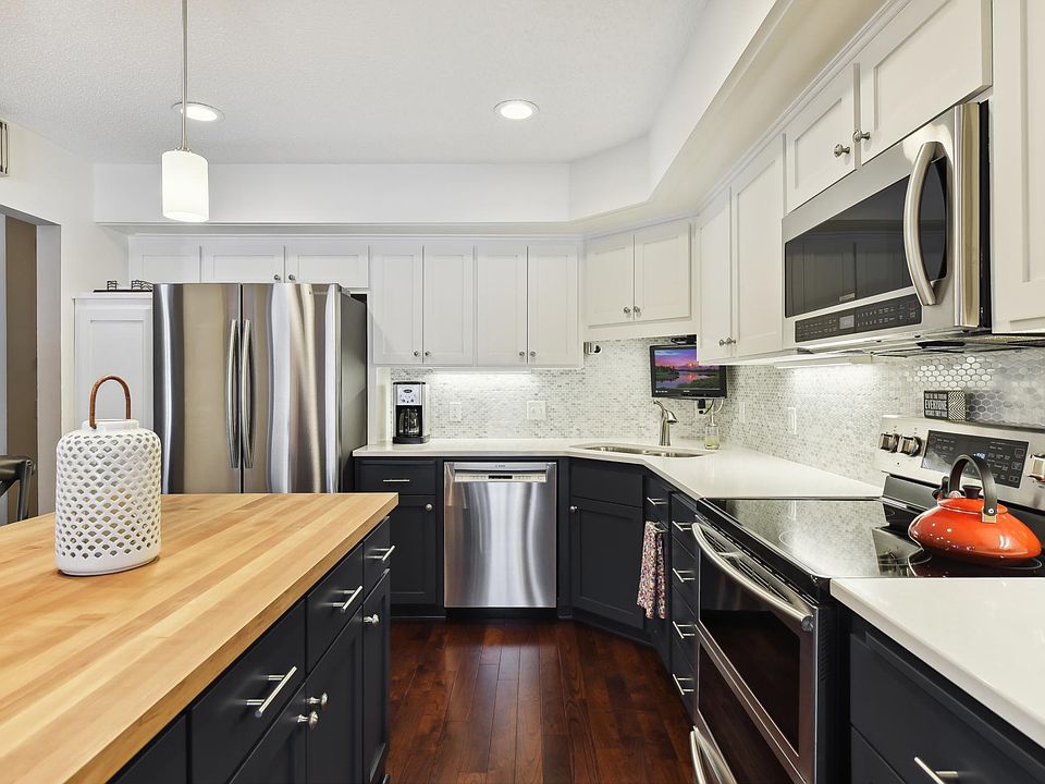 Rare opportunity to own a spacious, well maintained, and updated end unit in highly desirable Hyland Creek. Premium lot with very large deck with accent lighting--overlooks gorgeous landscaping. Completely open kitchen, living room, and dining area. Remodeled kitchen with quartz counters, center island, and new appliances. Wood flooring installed in the kitchen and dining areas. Two fireplaces, high ceilings with natural sunlight—feels light, bright, and spacious! Redesigned bathrooms. Solar tube installed in primary bath for great lighting, plus updated lighting fixtures in much of the home. Mechanical updates include new roof in 2018, added additional insulation in attic, garage door opener and thermostat with WIFI, hot water heater, patio door, the list goes on. Walkout lower with patio which is ideal to let the dog out! Nearby Hyland Park offers a multitude 4 seasons activities. Close to airport and everything else! Come see it and fall in love!