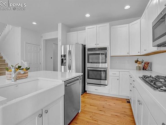 MOVE-IN READY - MAIN FLOOR OFFICE - SOLAR! This super clean, bright, beautifully maintained 4-bedroom, 3.5-bathroom home with finished basement, butler’s pantry, and garage workshop offers the perfect blend of style, function, and comfort. It's ready for your personal touches with freshly painted interiors, 3/4" refinishable oak flooring, and many easily customizable elements. Set on an oversized lot on a cul-de-sac street, the freshly painted interiors feel bright and welcoming from the moment you enter. The foyer opens to a dedicated office—ideal for remote work—alongside a convenient half bath. The open-concept kitchen is a chef’s delight with an island, double ovens, gas cooktop, and newly remodeled butler’s pantry. The eat-in dining area flows into the living room, complete with a fireplace, and out through sliding doors to a spacious back deck—perfect for entertaining or enjoying Colorado’s sunshine. Upstairs, the spacious primary suite features a private bath and plenty of room to unwind. Two additional bedrooms, a full bath, and laundry with newer front-loading washer and dryer add convenience. The finished basement expands the living space with a large recreation room, fourth bedroom, full bath, and a kitchenette with a full-size second refrigerator—perfect for guests or extended family. Two storage closets and a mechanical room keep things organized, including one cleverly concealed behind a bookcase door. The oversized 2.5-car tandem garage includes tall ceilings, lots of built-in storage shelving, and a workbench with cabinetry, plus a side door to the fenced backyard with additional pet fencing. Candelas residents enjoy a vibrant lifestyle with access to community pools, parks, playgrounds, trails, and highly rated schools, all just minutes from shopping, dining, and major commuter routes. This is your chance to own a move-in ready, thoughtfully designed home in one of Arvada’s premier neighborhoods. Schedule your showing today!