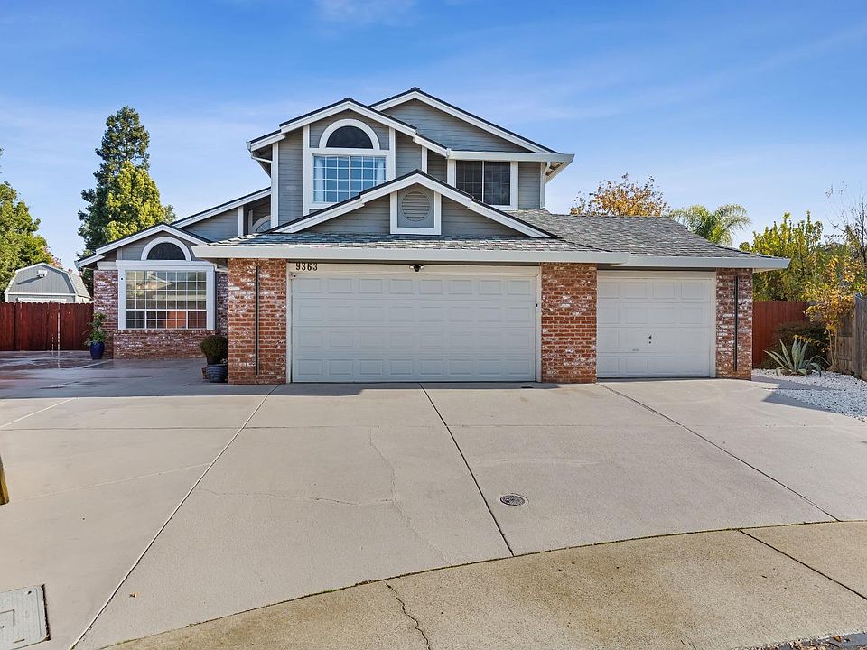 Welcome to your dream home located in the very desirable Fallbrook neighborhood of Elk Grove. This stunning house is 2545 Sqr ft, and has 5 bedrooms, 3 baths, and several highlights and upgrades such as: quartz countertop, LVP floors, 2 fireplaces, custom ceiling fans, whole house fan, water softener, Cul-de-sac lot, and a third car garage. The floor plan is great for large families and is perfect for entertaining. The downstairs has one bedroom, one bath, kitchen, formal dining area, family room and a living room. The upstairs has 4 spacious bedrooms, and 2 baths. The primary bedroom is huge and has a wood burning fireplace, and large closet. The backyard has a gorgeous pool with custom lighting, a large recreation area, 10 X 12 shed, and a huge side yard for possible RV or boat parking. The shed can be used as an office since it has electrical, finished walls, and AC. The pool was just recently re-done with a pebble tech finish, and the pumps were also replaced. The location is very convenient with plenty of shopping and restaurants in the area. You will also love the beautiful walking trails and parks in the area for the kids. Elk Grove Elementary is within a short walking distance. Save money with no HOA's or Mello Roo's. Don't miss out on this great house!