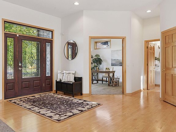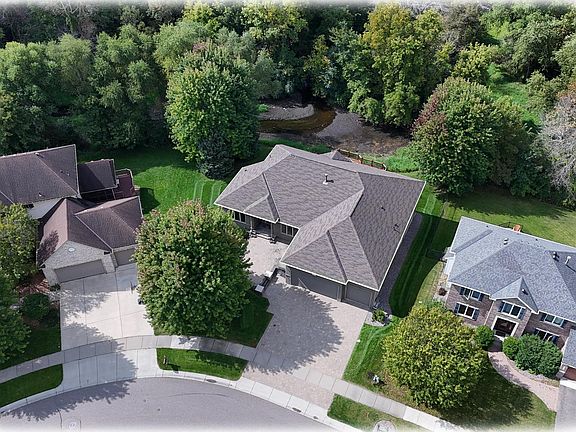 If privacy and serenity are what you seek, look no further. Perfectly nestled on a quiet cul-de-sac street, this home is bordered by the gentle sounds of Rush Creek and a picturesque nature area. The stunning curb appeal with impressive paver driveway and patio, creating a warm and welcoming first impression. Inside, you are greeted by a gracious open floor plan. A wall of windows in the living room frames the beautiful outdoor views and fills the space with spectacular natural light. At the heart of the home, a three-sided gas fireplace provides both charm and comfort, with views from nearly every gathering space. The formal dining room provides both elegance and space. The kitchen showcases attractive cabinetry, beautifully complemented by maple flooring that flows seamlessly into the dinette area. A private main-level office creates an ideal work-from-home environment or quiet study space. The expansive primary suite offers a colossal walk-in closet and spa like bathroom with heated floors. A highly desirable layout with all essential living spaces on the main level including the laundry room provides both comfort and accessibility for everyday living. The finished lower-level walk out features three additional bedrooms and a versatile recreation room - perfect for a dance studio, exercise area, craft, or hobby space, or whatever fits your lifestyle. A large deck and patio area - ideal for outdoor cooking, entertaining, and relaxation. Generous storage rooms provide space for all your extras, while the three-car garage is yet another bonus. New upgraded 50 year shingle.