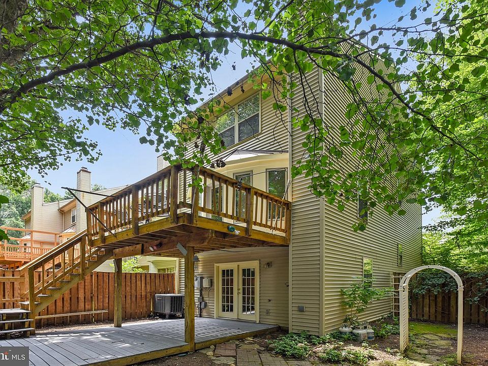 This is your escape from the city. Lovely end unit townhome in Wooded Glen that lives like a single family homes and takes you away to the forest. Lovely tiered porches and yard back onto wooded acreage, letting you immerse yourself in Virginia nature. Fenced in backyard allows four-legged friends to roam free. Inside the home, beautiful porcelain tile greats you as you enter the foyer. Chaming half bath, one car garage, and cozy family room with fire place finish out the entry level. Main living area boasts of a generous dining area which leads out to large living room with a bay window that allows the outside in. Spacious kitchen has plenty of cabinet space, large pantry, laundry closet, breakfast bar and an eat-in area. The bedroom level has a stately master bedroom with vaulted ceilings, two walk in closets and ensuite. Two more well appointed bedrooms and an additional 2nd full bath finish out the top floor. This is a house that feels like a home. Don't miss out! Schedule a time to see this gem today.