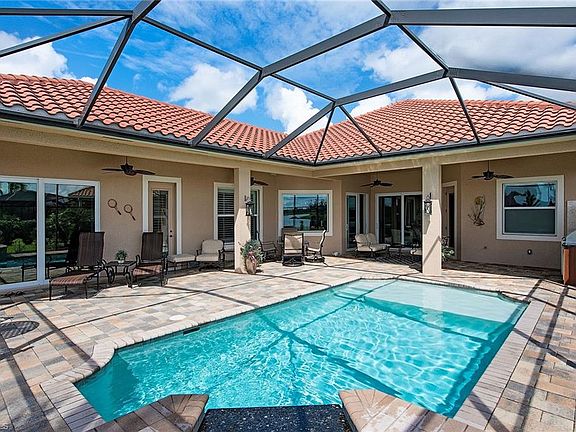 Spectacular Madison floor plan with stunning lake view in Chiasso. This beautiful home has a gallery foyer with one-of-a-kind ceiling detail. The same attention-to-detail continues through the living, dining and family rooms. Exceptional upgrades in flooring, custom lighting, and window treatments including plantation shutters. An open concept in the living areas provides excellent use of space while allowing for intimate conversation or large gatherings. Additional features include wood flooring, granite counters throughout, crown moldings and several are niches. Light and bright with a sophisticated appeal, this desirable floor plan includes ample lanai area around the gorgeous waterfall pool and spa. A superior lake view is apparent from the den and lanai. Exceptional laundry room, garage and an oversized, pie-shaped lot add to the desirability of this home. The amenities of this country club style community include private golf, tennis, world-class spa and fitness center and fine dining. Minutes away from the amenities, shops and restaurants of Old Naples and Marco Island. An exceptional home in an exceptional community.