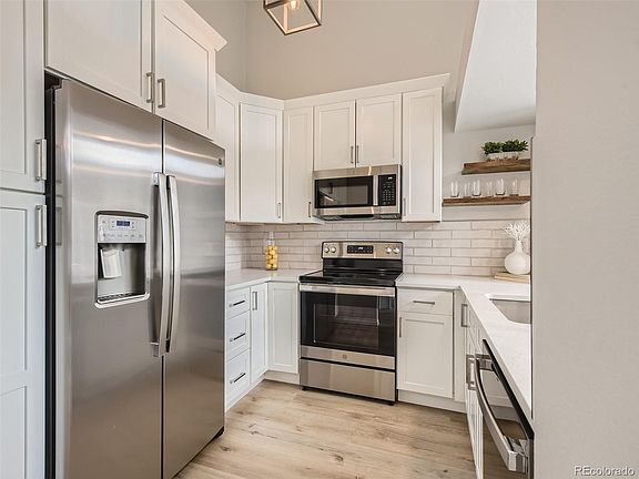 GORGEOUS, MOVE-IN-READY FULL, PROFESSIONALLY DESIGNED REMODEL!*3 bed 2 bath, private CUL-DE-SAC in centrally located Highlands Ranch, 5 min to E-470, restaurants, & shopping!*Light & bright *natural*South Facing sunlight!*ALL new Open-Concept Kitchen w/custom designed*soft-closing cabinets & 2 gorgeous floating shelves*cabinet pulls*full 2' tall backsplash*quartz countertops, lighting, plumbing, sink, faucet & disposal!*BRAND NEW Matching GE Stainless Steel Appliances - Side-by-Side fridge w/built-in water/ice maker, built-in microwave, stove, dishwasher & Samsung Washer & Dryer Set!*All new Bathrooms - new warm satin nickel plumbing fixtures, lighting, soft-close vanities, tops, mirrors, both bathroom towel rack sets, all new custom tile with wall niches in both bathroom tile inlays*matching tile Schluter/edging in satin nickel to match fixtures!! All new*wide plank LVP flooring* on Main Level & bathrooms, with NEW custom comfy carpet where it should be - stairs and bedrooms*All new chandeliers/light fixtures in the entire home!*Great room in the living room gives you soaring 13 feet ceilings!*Dedicated dining room*And room enough for 3 dedicated bar stools facing the open-concept kitchen!*Newer roof*New fireplace mantel*wood-burning*all new interior AND exterior professional paint