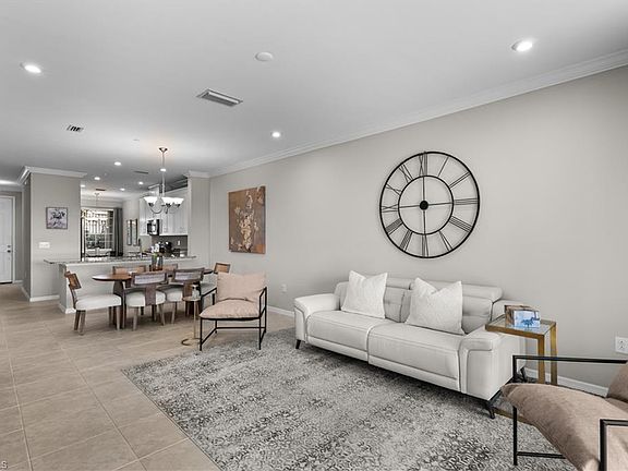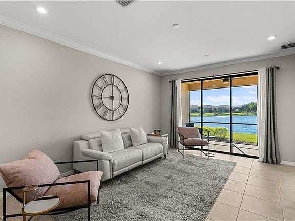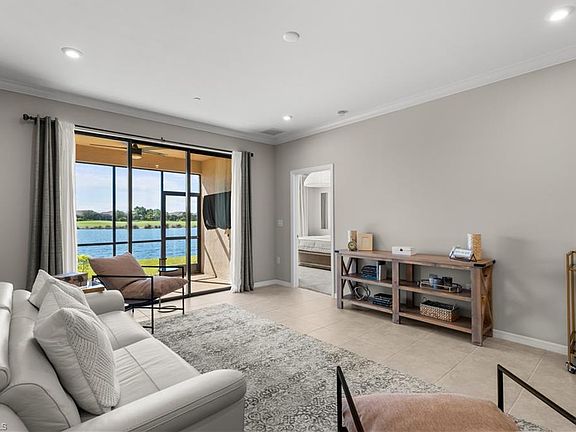 LIVE A VACATION LIFESTYLE IN ESPLANADE! Built in 2021, this immaculate and well appointed TURNKEY 2 Bedroom+Den, 2 Bath first floor condo offers an open and airy floorplan with sliding glass doors to the covered and screened lanai with expansive views of the lake and golf course in the distance. Catch sunsets 365 days a year as this condo features due west rear exposure. This lovingly maintained move-in ready condo has been tastefully furnished and decorated and is ready to be enjoyed this winter season. A long list of special features include: tile floors throughout the living areas and den; crown molding throughout the living area/kitchen; white shaker style kitchen cabinets; GE stainless steel appliances; detached 1 car garage; and more! This property is being offered FULLY FURNISHED & DECORATED/TURNKEY! This property comes with a CLUB/SPORTS MEMBERSHIP which offers full access to all of Esplanade G&CC amenities including limited golf opportunities (2 day advanced tee times throughout the year). Esplanade is a true "Lifestyle Community" with something for everyone: resort pool complete with cabanas & poolside "Bahama Bar"; tennis; pickleball; bocce; Koquina Day Spa; fitness center; dog park; 14 miles of trails; 18 hole private golf course; restaurant, bar, wine tasting room, wine lockers, & Starbucks style cafe! Total monthly HOA/Club/Condo dues include water/sewer, building insurance, building maintenance, and access to all of Esplanade's resort style living amenities! Add this property and Esplanade Golf & Country Club of Naples to your list today!