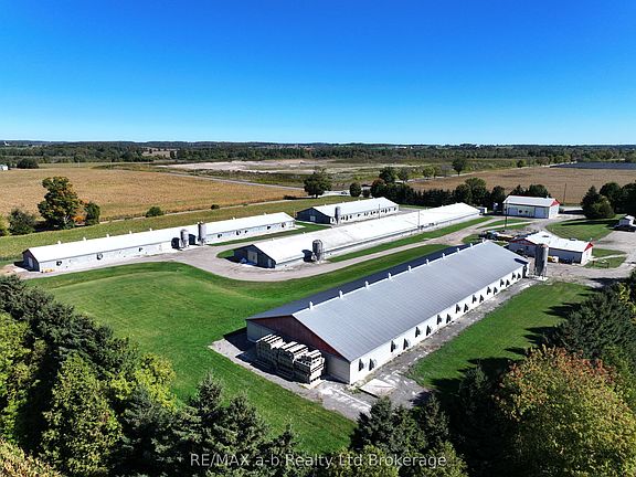 Situated in the heart of Oxford County, Endeavour Farms is a versatile 25-acre agricultural property featuring 14 acres of workable land and over 55,000 sq. ft. of barn space, currently in active use for turkey production. The farm infrastructure is complemented by a 50 x 60 insulated and heated shop divided into two bays, providing flexible space for storage, equipment, or business operations. A duplexed farmhouse anchors the property, offering comfortable and adaptable living arrangements ideal for staff housing or an owners retreat. Surrounded by mature trees that enhance privacy and natural beauty, and located just 10 minutes from Kitchener between Drumbo and New Dundee, this farm offers an excellent opportunity for agricultural production, expansion, or creative business ventures in a highly accessible location.