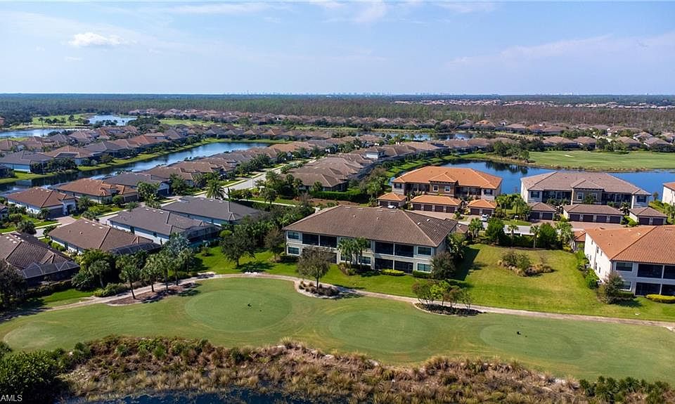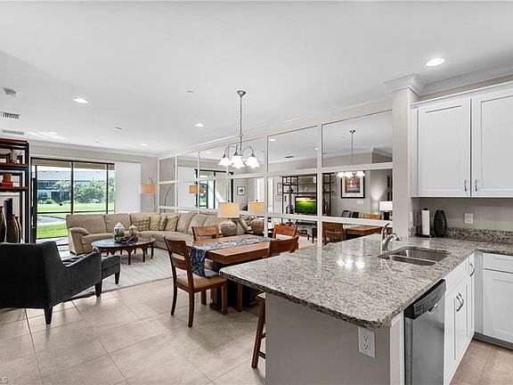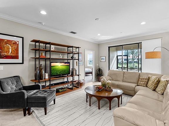 LIVE A VACATION LIFESTYLE IN ESPLANADE! This immaculate and well appointed FURNISHED 2 Bedroom+Den, 2 Bath first floor condo offers an open and airy floorplan with sliding glass doors to the covered and screened lanai overlooking the golf course and lake. This lovingly maintained move-in ready condo has been tastefully furnished and decorated by its original owners. A long list of special features include: custom millwork accent wall with custom cut mirror; tile floors throughout the living areas and den; crown molding throughout the living area/kitchen; white shaker style kitchen cabinets; GE stainless steel appliances; detached 1 car garage; and more! This property is being offered FULLY FURNISHED & DECORATED! This property comes with a CLUB/SPORTS MEMBERSHIP which offers full access to all of Esplanade G&CC amenities including limited golf opportunities (2 day advanced tee times throughout the year). Esplanade is a true "Lifestyle Community" with something for everyone: resort pool complete with cabanas & poolside "Bahama Bar"; tennis; pickleball; bocce; Koquina Day Spa; fitness center; dog park; 14 miles of trails; 18 hole private golf course; restaurant, bar, wine tasting room, wine lockers, & Starbucks style cafe! Total monthly HOA/Club/Condo dues include water/sewer, building insurance, building maintenance, and access to all of Esplanade's resort style living amenities! Add this property and Esplanade Golf & Country Club of Naples to your list today!
