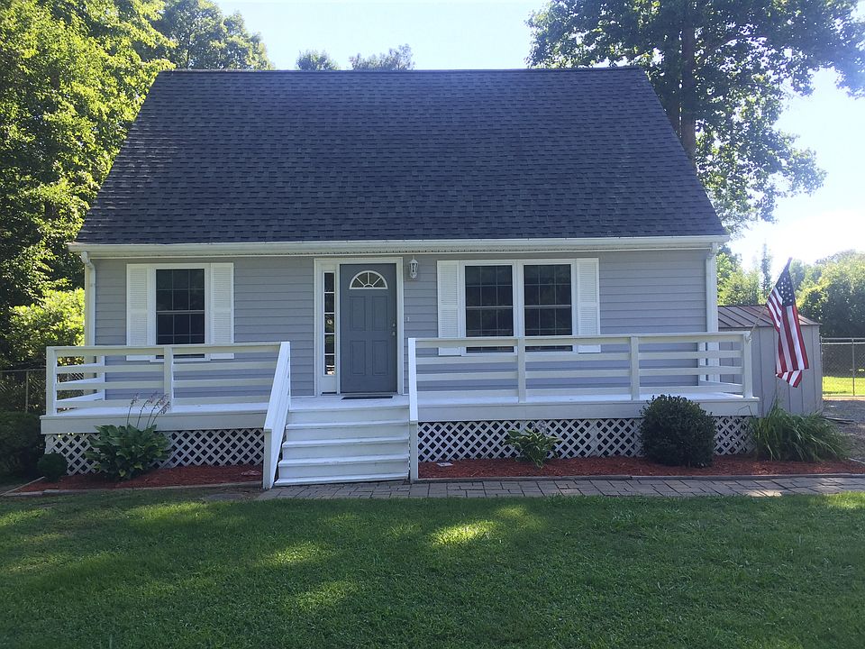 Perfect starter home recently renovated and move-in ready! 3 BR, 2 BA, kitchen, LR, dining area, enclosed sunroom, front porch, back deck, 2 outside sheds and fenced-in back yard. All appliances convey: Stove, refrigerator, dishwasher, washer, dryer, water softener.