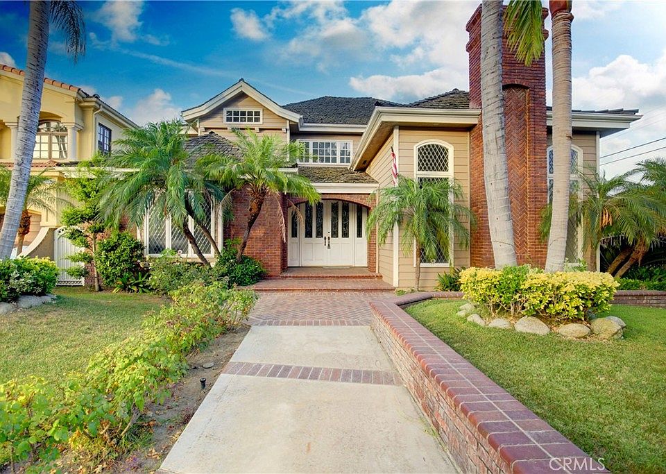 Valentine's Special! You'll LOVE this price reduction!!!! Custom built 4 bedroom, 5 bath home in Northeast Downey at the end of a cul-de-sac with stunning architecture, long driveway with porte cochere, 3 car garage, and pool and spa. The home speaks of elegance with marble floors in entry with curved staircase, formal living room with fireplace and vaulted ceilings, a downstairs bedroom and bathroom, and office with built-in cabinetry (possible 5th bedroom), formal dining room, and family room that includes a fireplace, built-in shelving, and coffered ceilings. Upstairs boasts 3 bedrooms, each with their own ensuite bathroom, and highlighted by the primary bedroom with dual walk-in closets, large bathroom with tub, shower and dual sinks, and a balcony that overlooks the backyard, which has a beautiful pool and spa, covered patio and built-in barbeque.