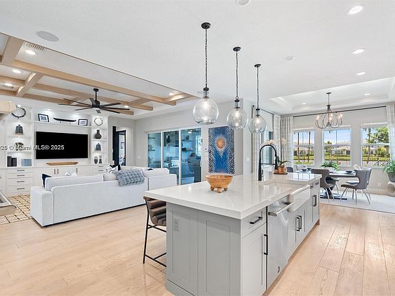 Welcome to this exquisite Toll Brother’s Watermark model home, where luxury meets sophistication. This beautifully designed residence features a saltwater pool with a heater, sun shelves, and a relaxing spa. The outdoor kitchen is perfect for entertaining, equipped with two refrigerators and a never-used BBQ, while the lanai offers electric screens for comfort. Inside, you'll find high-end appliances, designer furnishings, and professional décor throughout. The three-car garage provides ample space, and the home is surrounded by lush, custom landscaping with outdoor lighting. Situated in Watermark at Avenir , one of the area's most coveted communities, enjoy access to scenic trails and upscale shopping. Don’t miss this stunning gem!