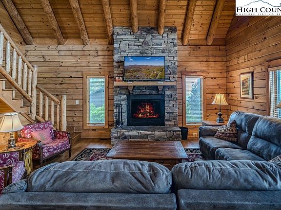 Brand new HVAC system installed in September 2025! On top of Seven Devils, this four-bedroom, three-and-a-half bath log cabin offers rustic mountain charm while being convenient to all the High Country has to offer. Take in the long-range views of Grandfather Mountain from one of the multiple covered decks, unwind in the hot tub or play in the spacious yard. The main level features an open floor plan with soaring exposed beam ceilings, fireplace and plenty of space to entertain. The spacious primary suite with a private balcony, walk-in closet, double vanity and an oversized tub and separate shower. In the loft area is another primary suite with private balcony and garden tub. Downstairs there are two bedrooms with a Jack and Jill bath, gas fireplace, bar and pool table. This property is fully furnished and ready for you to enter into your dream mountain home. Agent notes: There is a 416-square-foot difference between tax records and actual measurements. Loft area and bedroom are not noted in tax records and show a three-bedroom home, however county issued a four-bedroom septic permit and the home functions as four bedrooms. These are original owners of the property and state all work was completed at the same time.