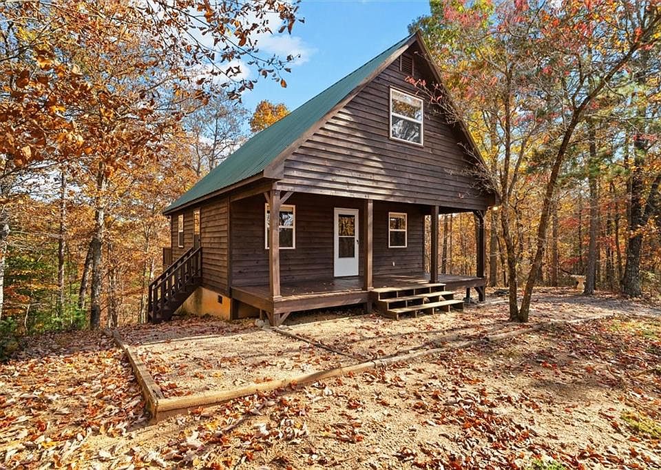 Discover a classic North Georgia mountain cabin tucked inside the gated community of Talking Rock Creek Resort. This 2-bedroom, 1.5-bath, 1,024-sq-ft, treated-wood-sided home sits on 1.15 private acres, blending rustic charm with easy, single-level living just minutes from Carters Lake. Step inside to an open-concept layout with warm wood accents, hardwood floors, and a cozy cabin aesthetic that feels inviting the moment you walk in. The kitchen, dining, and living areas flow together seamlessly, creating a comfortable space for everyday living or weekend escapes. A metal roof, masonry foundation, and central HVAC add durability and peace of mind, while the covered porch and rear deck set the stage for outdoor meals, morning coffee, or evenings around a fire pit. Outside, the lot offers room to expand your outdoor living dreams—gardens, games, or simply a quiet spot to take in the mountain air. The home is move-in ready and designed for low maintenance so you can spend more time enjoying the setting instead of tending to it. Located within Talking Rock Creek Resort, residents enjoy an impressive amenities lineup: two pools, tennis and basketball courts, a fitness center, a stocked fishing lake, clubhouse, nature trails, and the community’s private Trout Lodge creekside beach. And with Carters Lake right across the road, boating, fishing, kayaking, and hiking are always within reach. The location offers excellent access to the best of North Georgia—Ellijay, Jasper, and Blue Ridge are all an easy drive for dining, shopping, festivals, orchards, and wineries. Atlanta and Chattanooga are roughly 60–90 minutes away, making this cabin a convenient full-time home, a mountain retreat, or an opportunity for those exploring short-term rental potential (TRCR allows STRs; buyers to verify all regulations). HOA dues are approximately $900/year (buyer to confirm). Whether you’re seeking a peaceful setting surrounded by nature, a getaway near Carters Lake, or a property with investment flexibility, this cabin delivers the mountain lifestyle with comfort, character, and a community full of amenities.